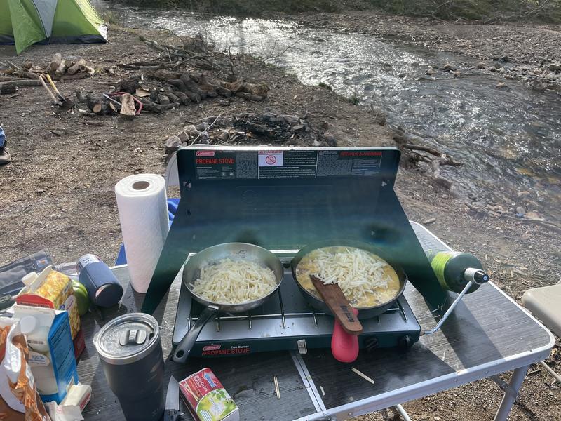 Annual guy's camping trip in Ouachita National Forest, Arkansas. Days in the 50F's, nights down mid-20F's. Sixteen guys, ages 6 to 50.